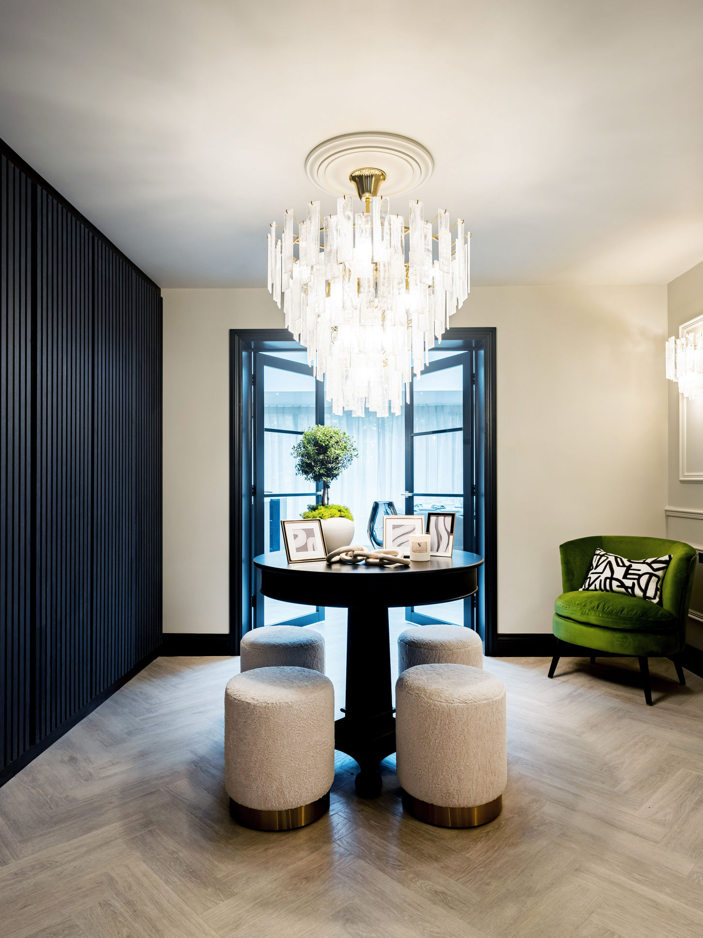 The vision was to create a holiday home that seamlessly blends the refined comfort of a gentleman’s club with the chic elegance of Elle Decor, where luxury and style take center stage. Our comprehensive redesign transformed every inch of the house, ensuring each room boasts its own distinctive, sophisticated aesthetic while maintaining a harmonious flow throughout. Rich textures and intricate patterns were thoughtfully introduced through bespoke curtains and cushions, expertly crafted by our in-house seamstress at NSD Studio. This project stands as a true reflection of our signature design philosophy, earning its place as a standout achievement in our portfolio.